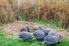 FYI: I LOVE my guineas. They are beautiful and ugly all in one. Β They are fierce and skiddish. They are graceful and funny as well!! They are my favorites of all our animals. Have been from the beginning and probably will always be….”my guineas” as we call them. π And my sweet husband always makes sure we always have them…just for me! So SWEET!!! π